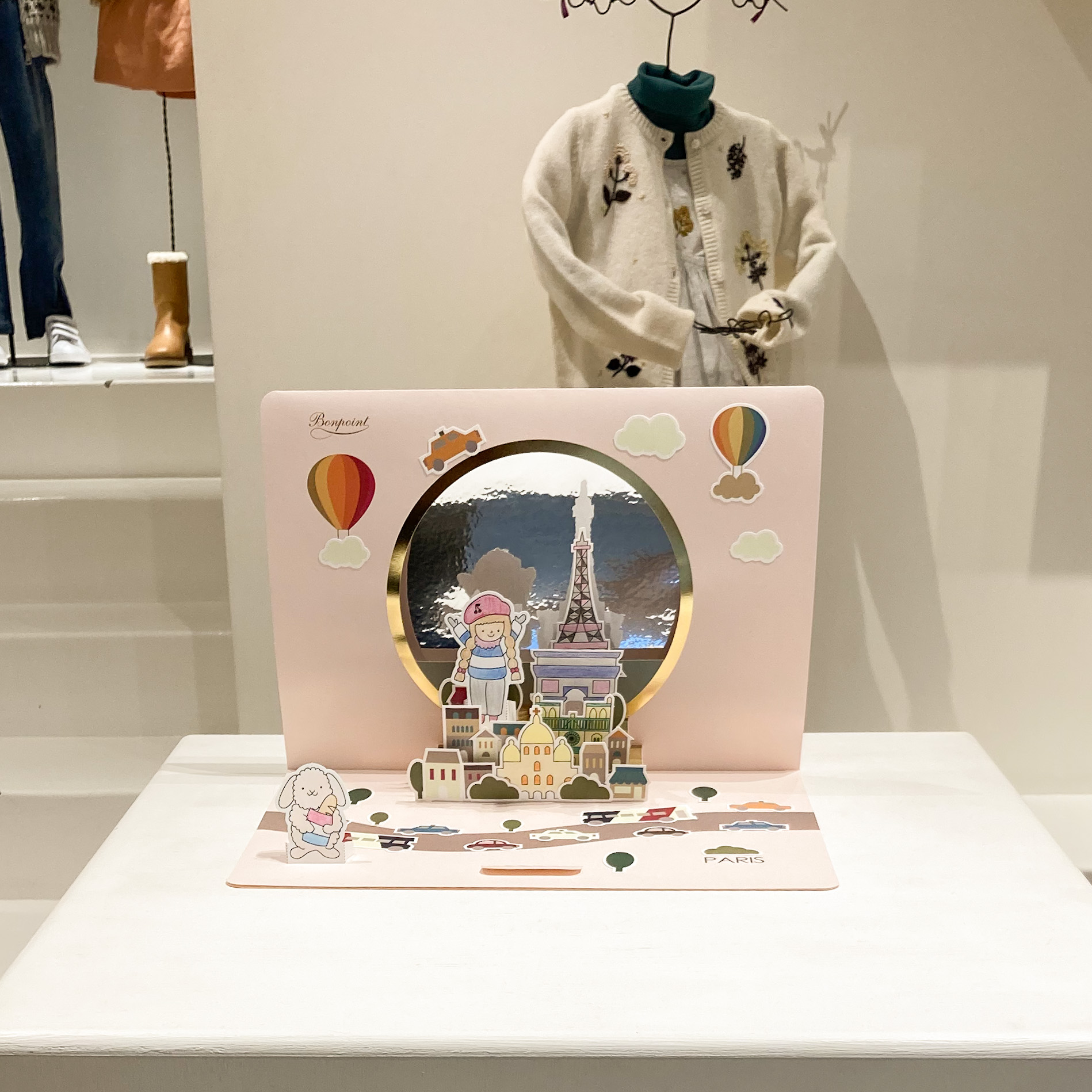 This foldable, glittery paper snow dome was designed around the theme of “Cherry’s World Voyage”, featuring the brand’s iconic character, Cherry.